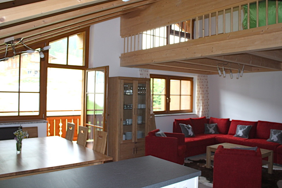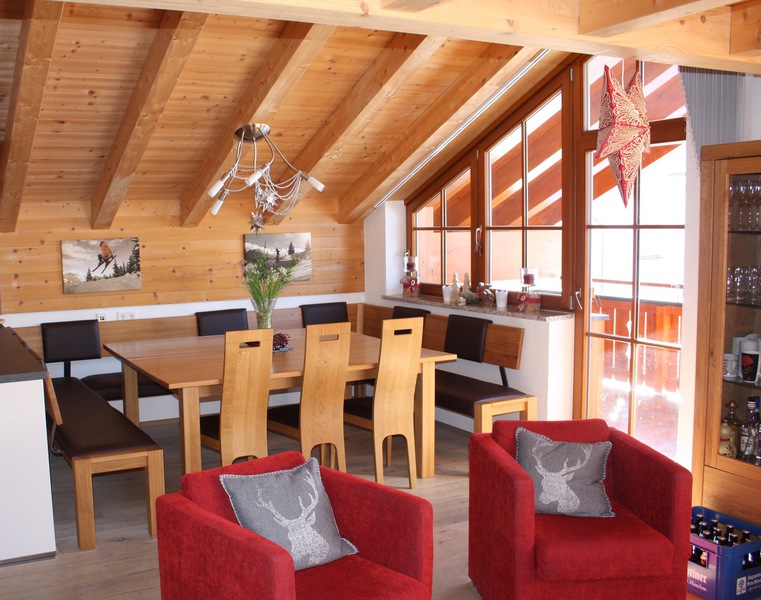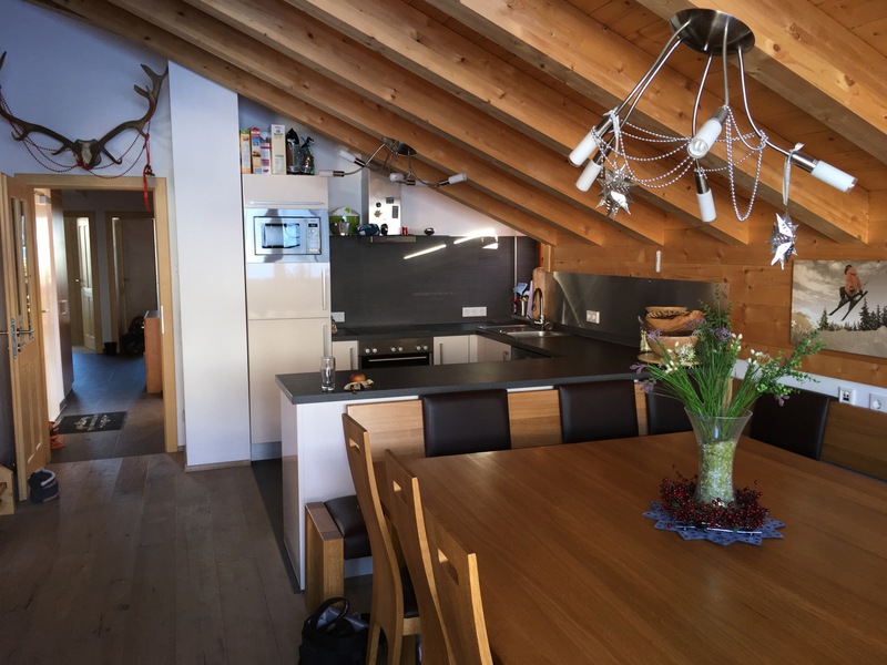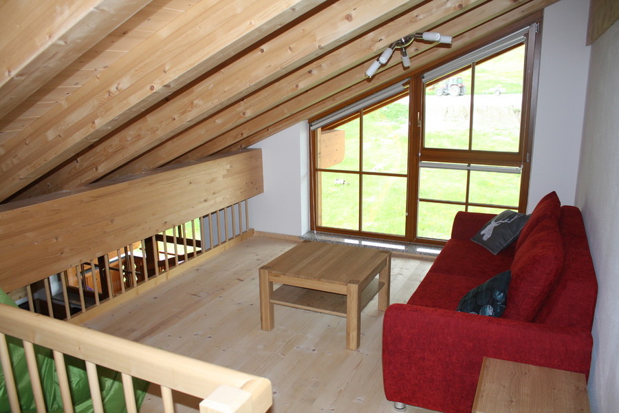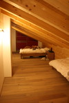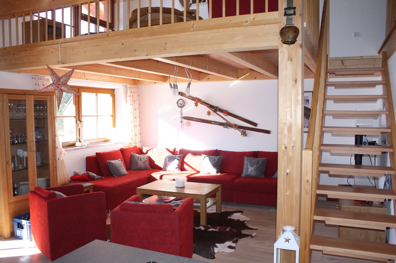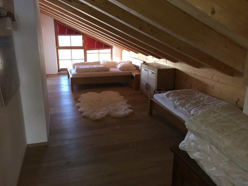 Sleeps a max of 15. Two double bedrooms, one double bunk room and a fourth triple room affords 11 people to sleep in beds, with a further possibility for another 4 with two sofa beds in the two living spaces. Upstairs has a second living area mezzanine and large Dachraum triple bedroom.