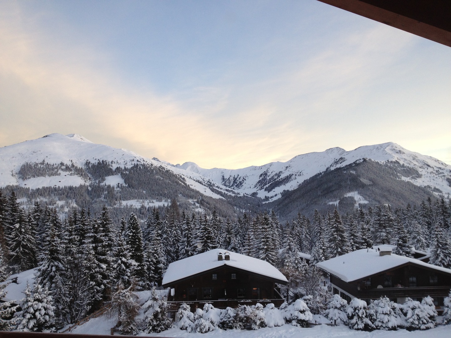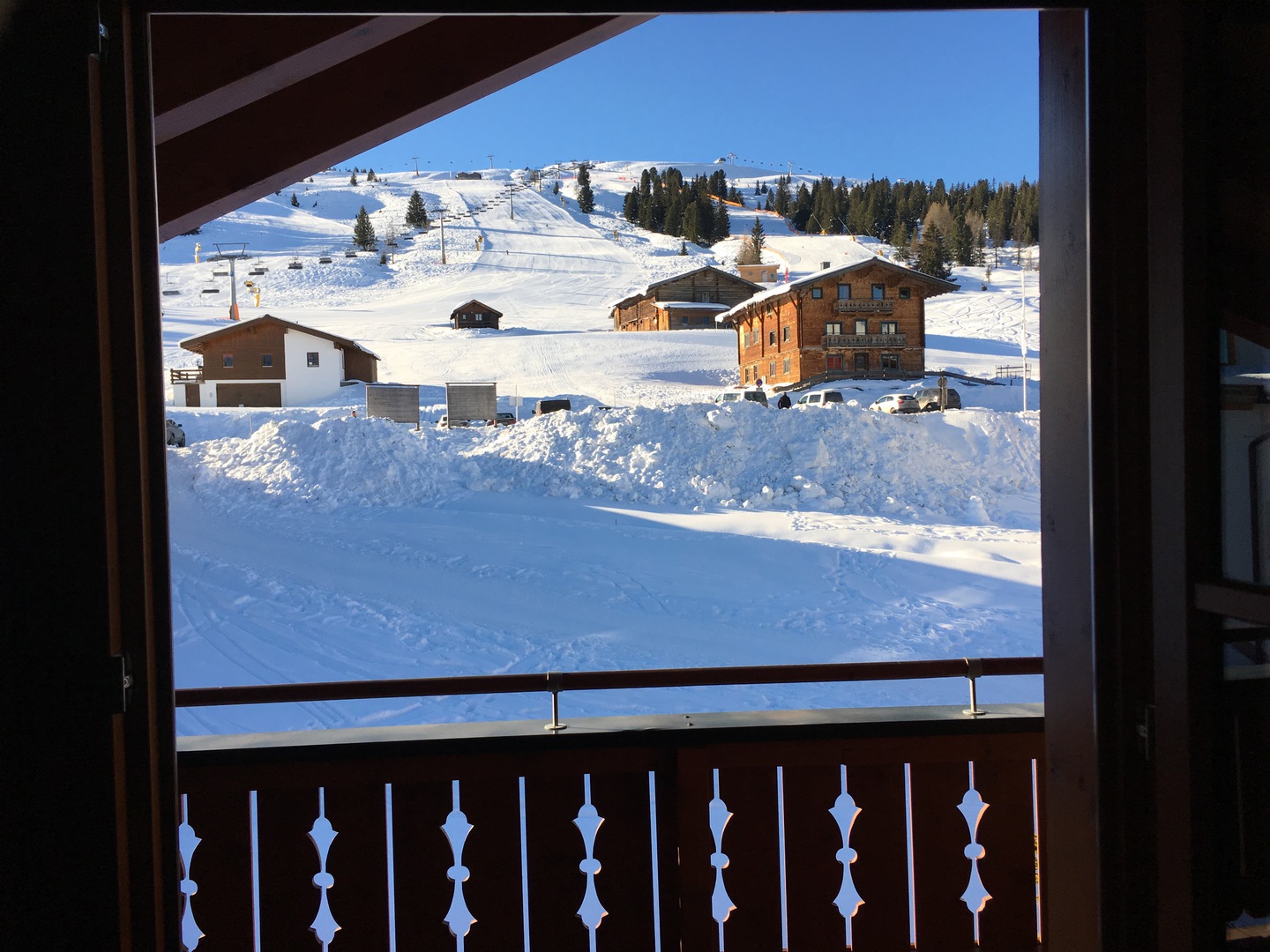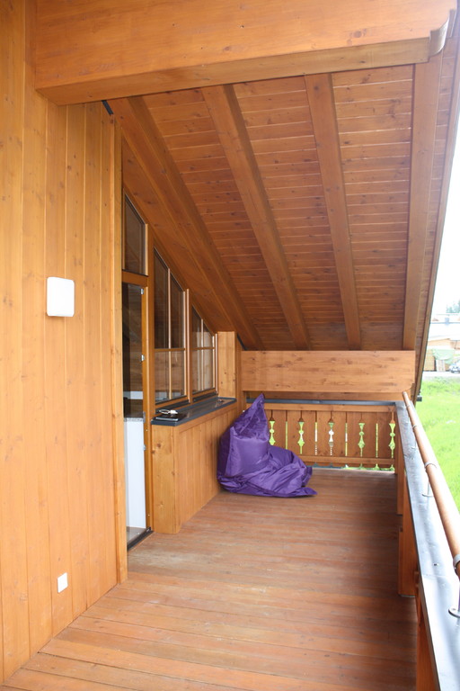 Views front and back from the this penthouse position both up the ski slopes and across the valley to the other mountain range, give a huge sense of space. The location is directly out onto the piste and mountain hikes.