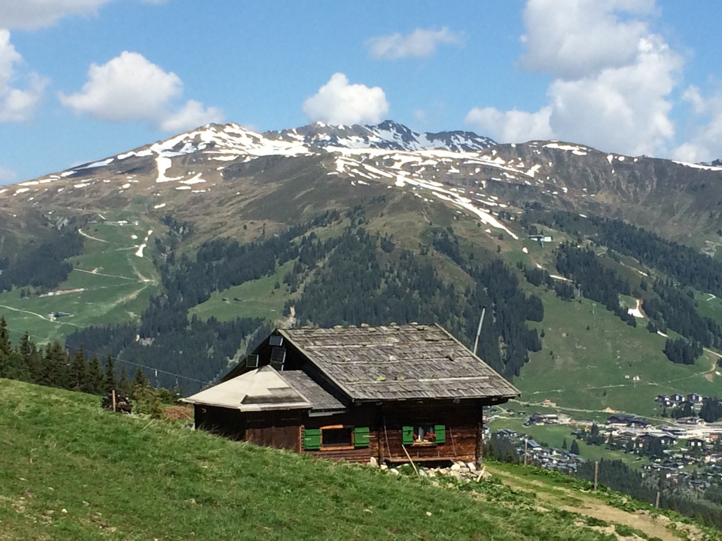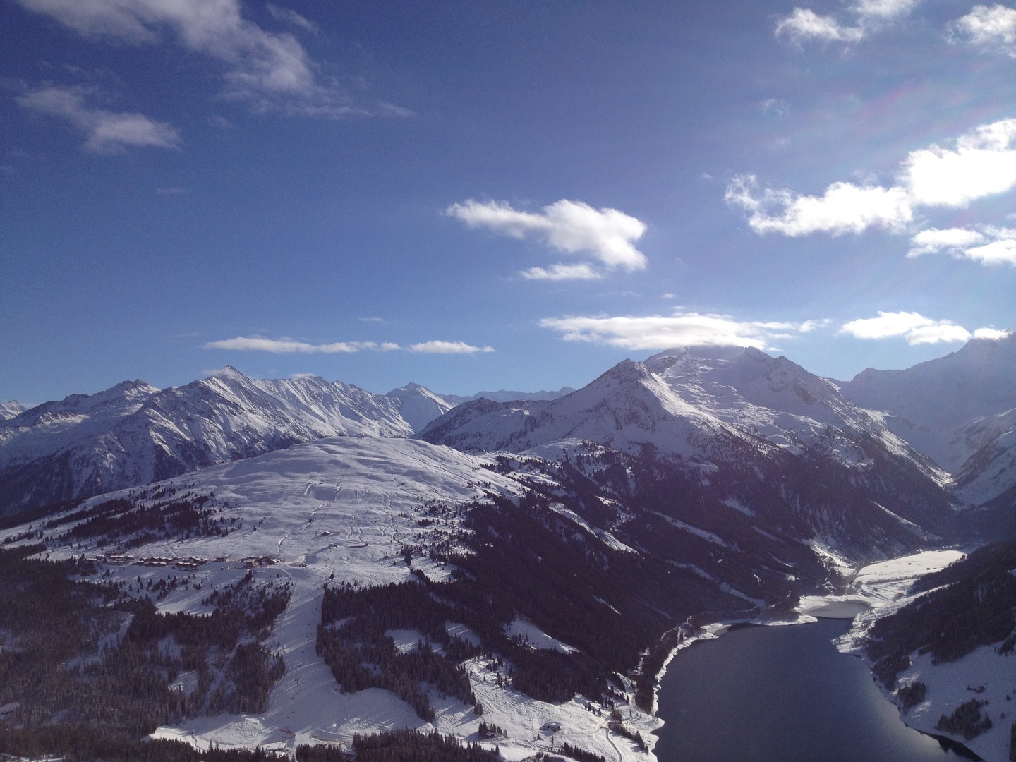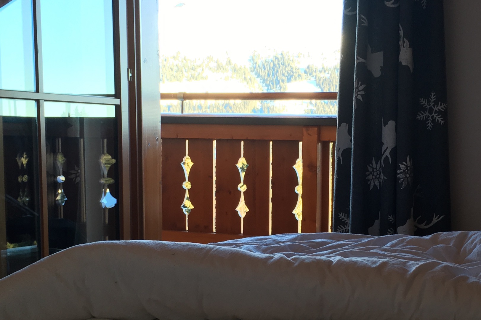 Views front and back from the this penthouse position both up the ski slopes and across the valley to the other mountain range, give a huge sense of space. The location is directly out onto the piste and mountain hikes.